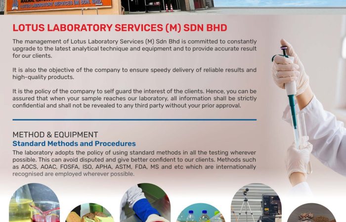 Lotus Laboratory Services (M) Sdn Bhd Machinery / Service Provider Tel : +607-364 6563 /+607-361 2334 / +607-364 7163 /Fax : +607-364 4363 41, Jalan Tiong Emas, Kawasan Perindustrian Tiong Nam, 81100 Johor Bahru, Johor Save Submit Review Share Share This Post facebook twitter linkedin google pinterest Description Photos Maps Reviews Description Contact : Bong Kuet Tsin (Managing Director) Nature of Business : Testing of oil & fat, food, water, chemical, environment and otehrs. Photos Maps Map Street View Get Directions Add Review & Rate Reply comment Cancel replyName Email Save my name, email, and website in this browser for the next time I comment. Be the first to review “Lotus Laboratory Services (M) Sdn Bhd” Cancel reply Quality Location Name Email Save my name, email, and website in this browser for the next time I comment. Review Close Business Info Get Directions 41, Jalan Tiong Emas, Kawasan Perindustrian Tiong Nam, 81100 Johor Bahru, Johor Tel : +607-364 6563 /+607-361 2334 / +607-364 7163 /Fax : +607-364 4363 http://www.lotuslab.com.my/ www.lotuslab.com.my Statistic 186 Views September 3, 2024 Nearby listings Find more Machinery / Service Provider near Lotus Laboratory Services (M) Sdn Bhd Browse Nearby Agriculture Fertilizer / Chemical Food / Manufacturing Mills / Refinery Oil Palm/Nursery Plantation Show all Contact Business Send Message